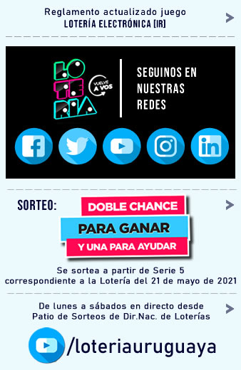 Loteria uruguaya en vivo. Emisión en directo de loteria uruguaya. Emisión en directo de loteria uruguaya duration. Quiniela y tombola vespertina a las 15 00 horas de lunes a viernes. Horarios de transmision de los sorteos.